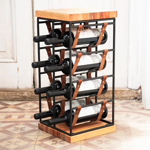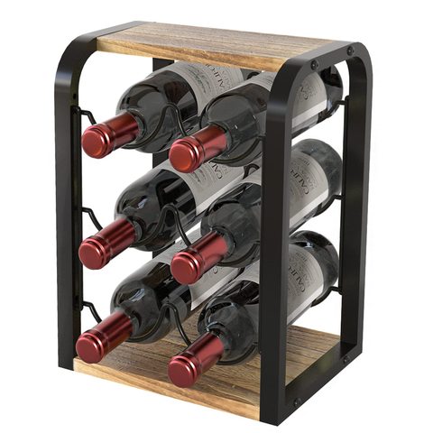 卸売りカウンタートップ素朴な木製ボトル収納ラック手作り木革鉄瓶オーガナイザー