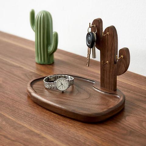 ホームエントランスキーハンガーシェルフ固体クルミ木製ボックスデスクトップトレイリングイヤリングキーストレージラック家庭用カップホルダー。