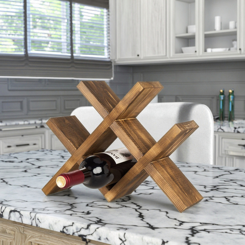 ワインラック木製ボトルスタック可能ソリッドウッド4ボトルカウンタートップ素朴なブラウンウッド