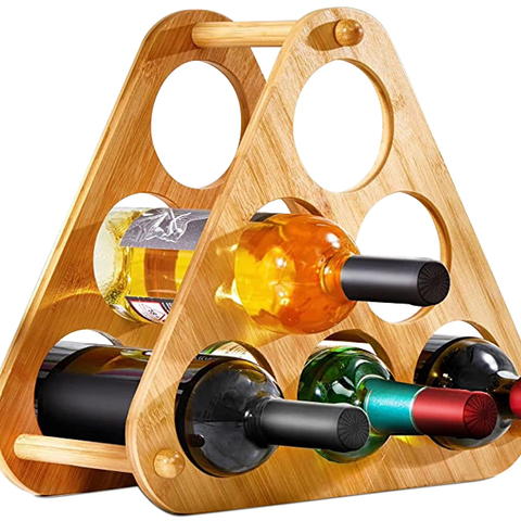 ワインラック木製ボトル積み重ね可能3本竹製ワイン収納ラックカウンタートップワインラックガラスホルダー付き