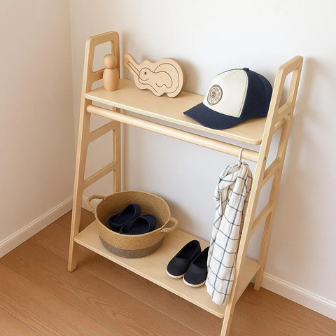 子供用ワードローブモンテッソーリ衣類ラックキッズ家具木製フレームラック衣類ラックモンテッソーリワードローブ