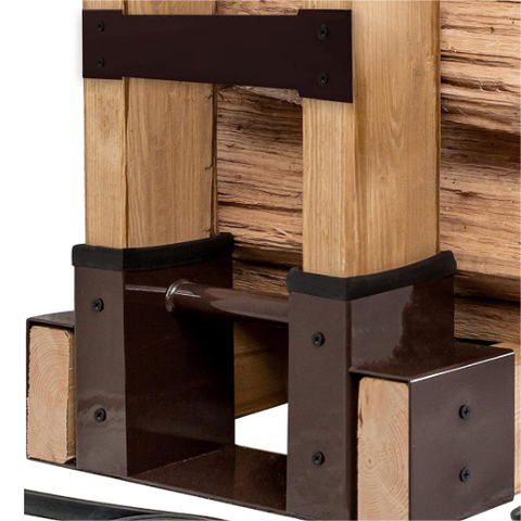 ชั้นเก็บฟืนกลางแจ้งสีน้ำตาลเข้มพร้อมแถบซีลถุงมือแผ่นเหล็กและสกรูชุดตัวยึดแบบปรับได้