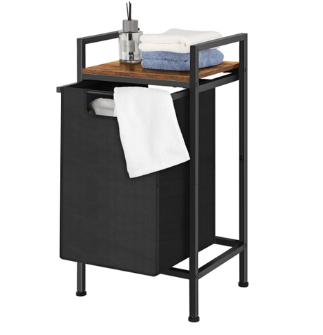 ตะกร้าไม้โลหะสำหรับซักผ้าตะกร้าใส่ของพร้อมชั้นวางของไม้และกระเป๋าแบบถอดได้สำหรับห้องน้ำหอพักดีไซน์ยอดนิยม