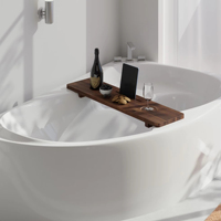 Wooden Bathtub Tray Acacia Bathtub Caddy with Carved Design Modern Multifunction Storage Tray with Adjustable Legs