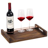 Sıcak trend özel rustik ahşap tepsi yanmış ahşap Deluxe şarap servis tepsisi Charcuterie kurulu şişe ve Stemware cam tutucu